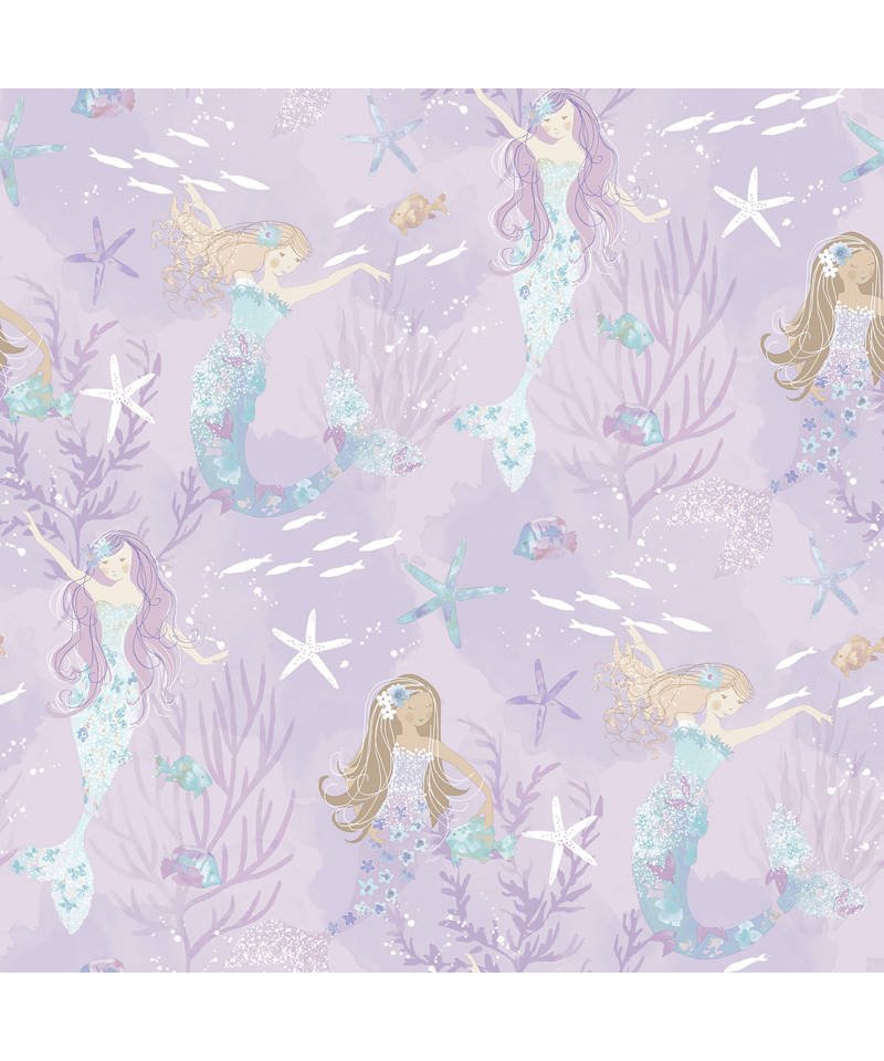 G78391 Parato TNT (Tessuto Non Tessuto) Tiny Tots 2 Mermaids Rotoli Mt. 10,05x0,53 con resistenza alla luce molto alta - Certificato disponibile