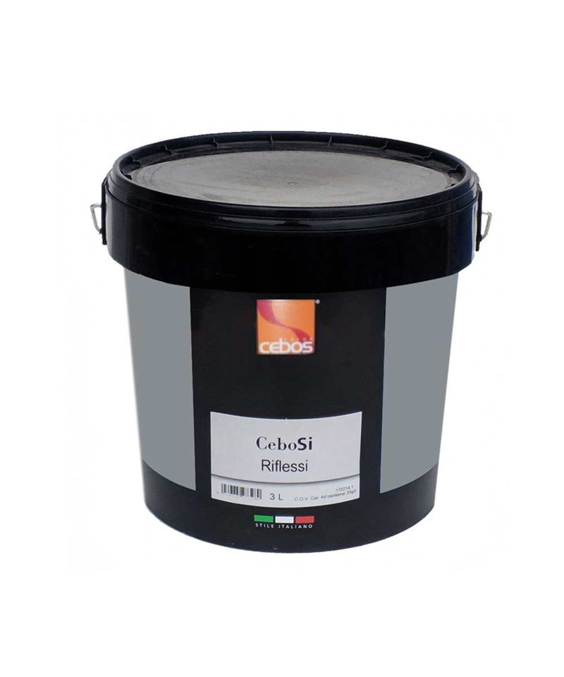 De agua de acrílico para los internos, de la máquina, semicoprente. CeboSi Reflexiones le permite crear moderno esmaltes que se caracterizan por reflejos metálicos en tonos deoro, que le dan brillo y elegancia a cualquier ambiente. Además de la tradicional aplicación (el efecto es suave), es posible crear diseños modernos en relieve (en efecto , con la espátula, de rayas), eligiendo entre los diferentes ciclos de la propuesta de las aplicaciones. CeboSi Reflexiones puede ser mejorada con la adición de CeboLux, un precioso aditivo de mica natural y que le da el acabado intensos toques de luz.