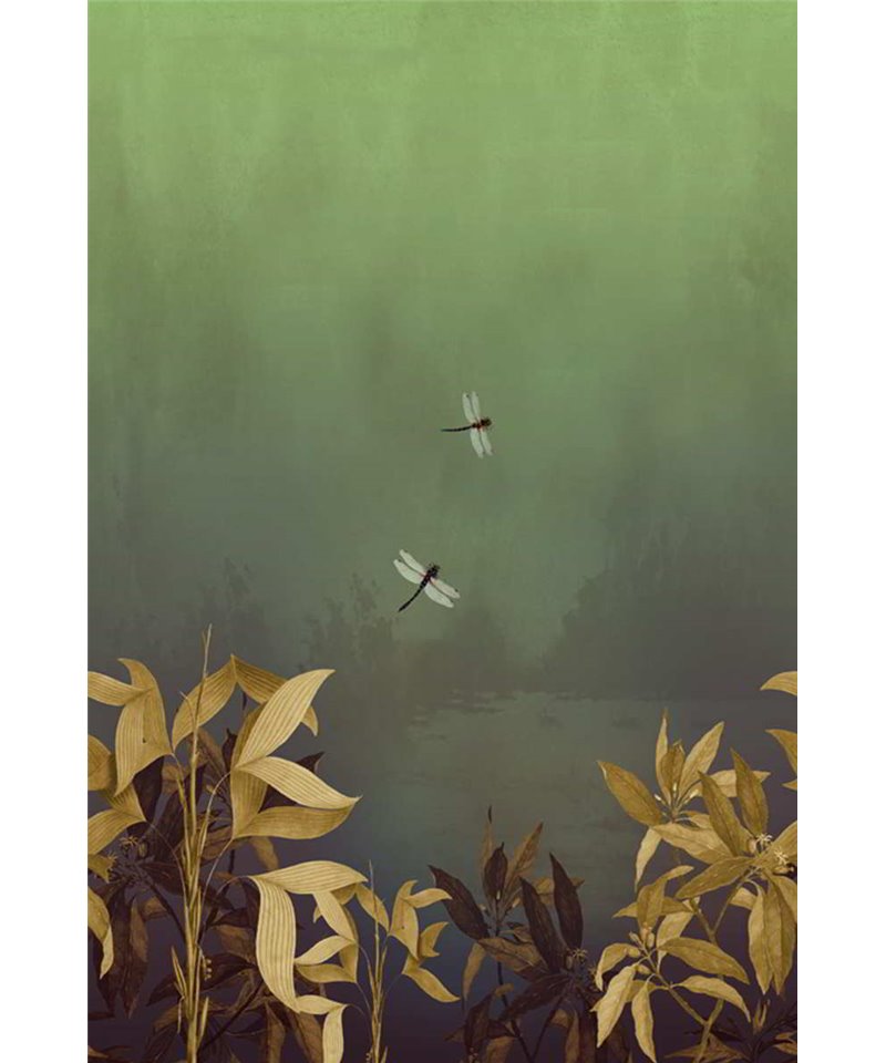 Papel pintado de Vinilo en TNT a partir de la colección de Onirique, altamente lavable con resistencia a la luz muy buena.