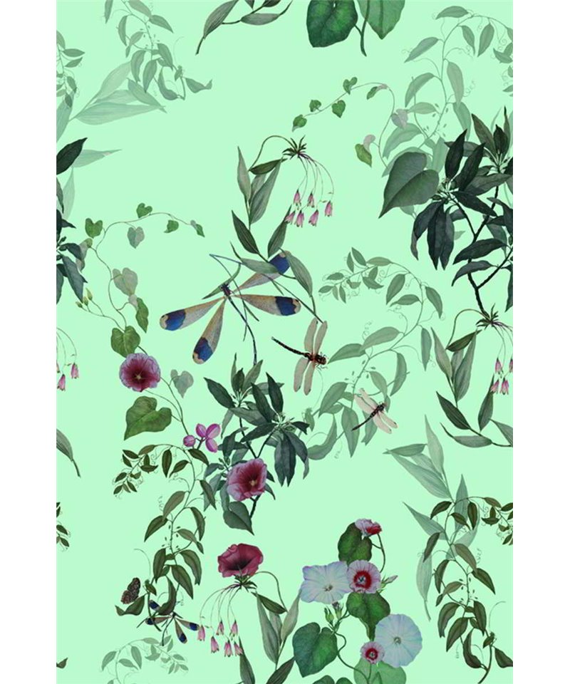Papel pintado de Vinilo en TNT a partir de la colección de Onirique, altamente lavable con resistencia a la luz muy buena.