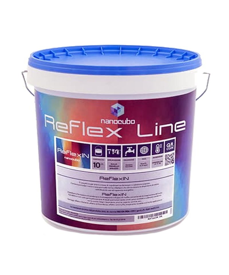 ReflexIn è una pittura per interni che contiene particolari micro e nano particelle termoriflettenti che diminuiscono la dispersione di calore, contribuendo così al risparmio energetico. Impedendo la formazione di condensa ed il conseguente sviluppo di muffa, consente nel contempo la traspirazione del muro.