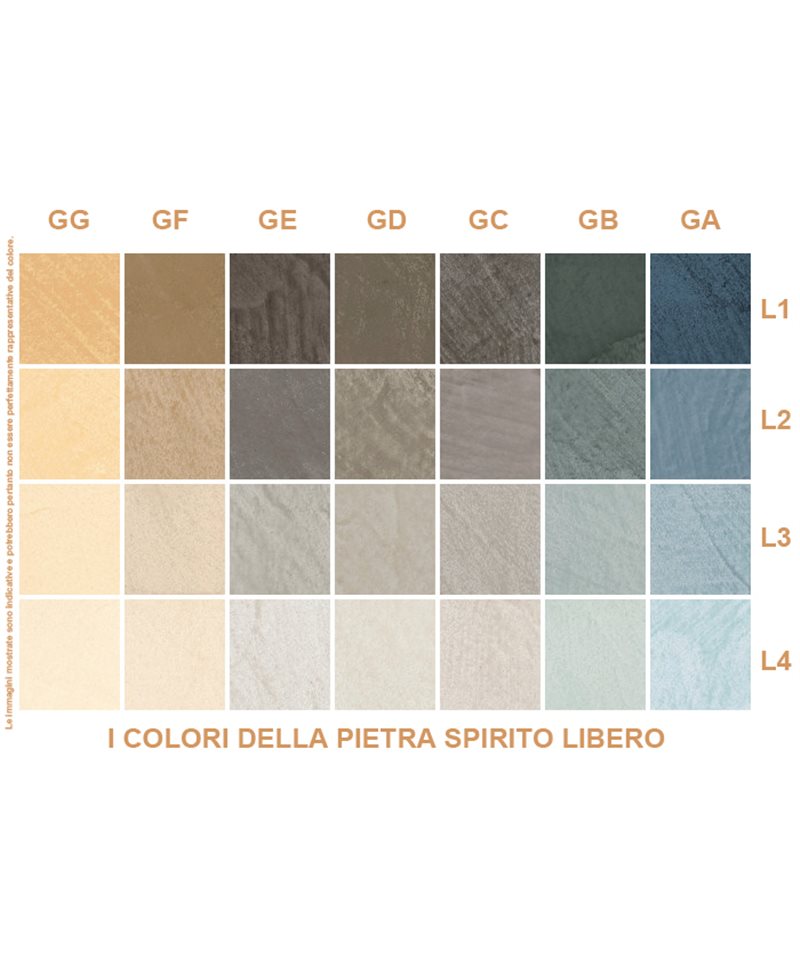 SPIRITO LIBERO, stucco di design che crea una parete semplice e pulita ma ricca di estetica e raffinatezza dalla linea " I COLORI DELLA PIETRA". Colorato e miscelato in sede con macchinari professionali, é sufficiente scegliere il colore e la tonalità da cartella per avere il prodotto pronto ad essere applicato.