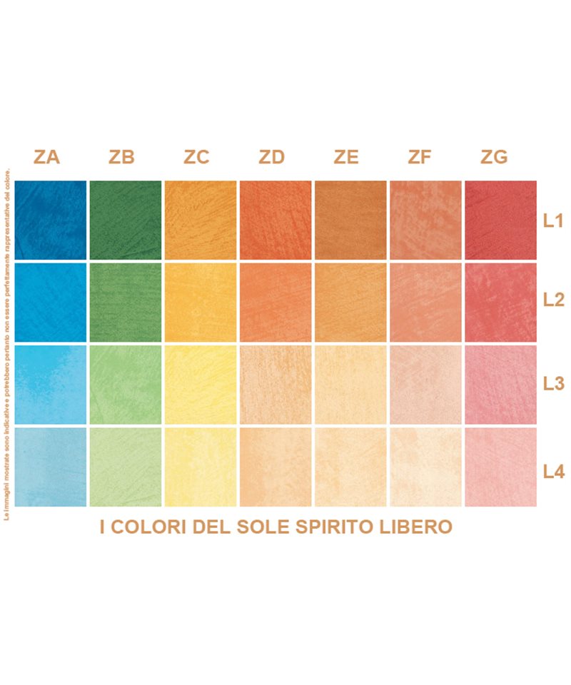 SPIRITO LIBERO, stucco di design che crea una parete semplice e pulita ma ricca di estetica e raffinatezza dalla linea " I COLORI DEL SOLE". Colorato e miscelato in sede con macchinari professionali, é sufficiente scegliere il colore e la tonalità da cartella per avere il prodotto pronto ad essere applicato.