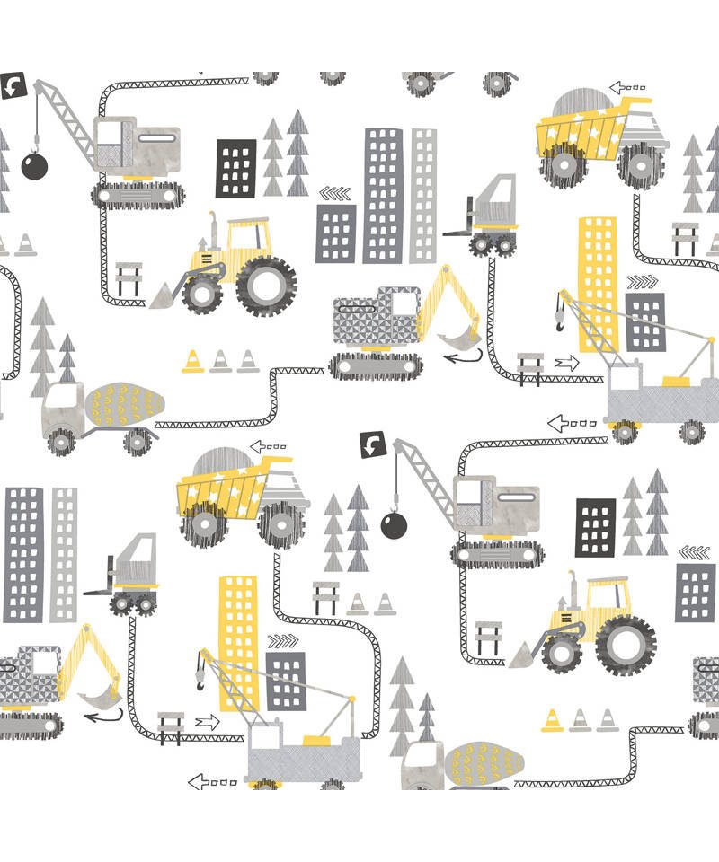 G78362 Parato TNT (Tessuto Non Tessuto) Tiny Tots 2 Construction Rotoli Mt. 10,05x0,53 con resistenza alla luce molto alta - Certificato disponibile